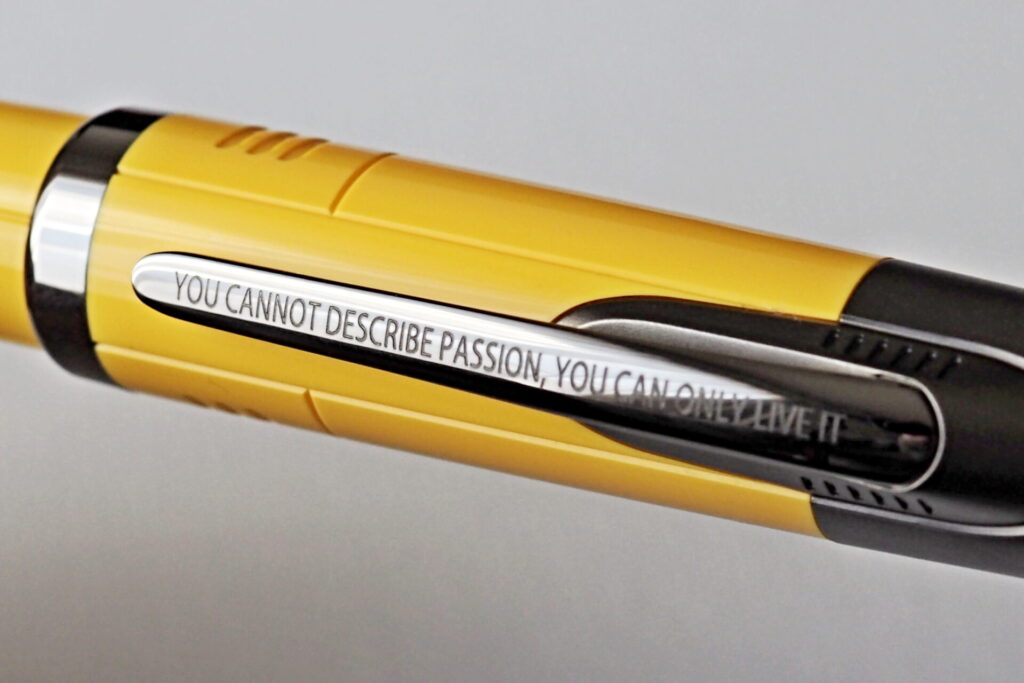 先にも書いたとおり、私の購入動機がまさにこのイエローであり、このフェラーリのレーシングカーを見事にペンに落とし込んだデザイン。