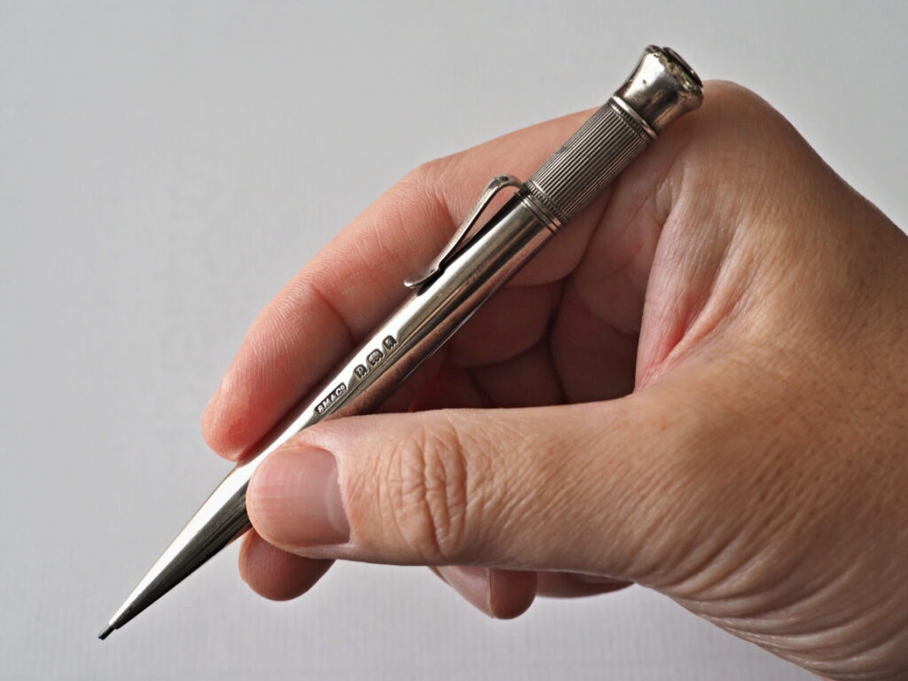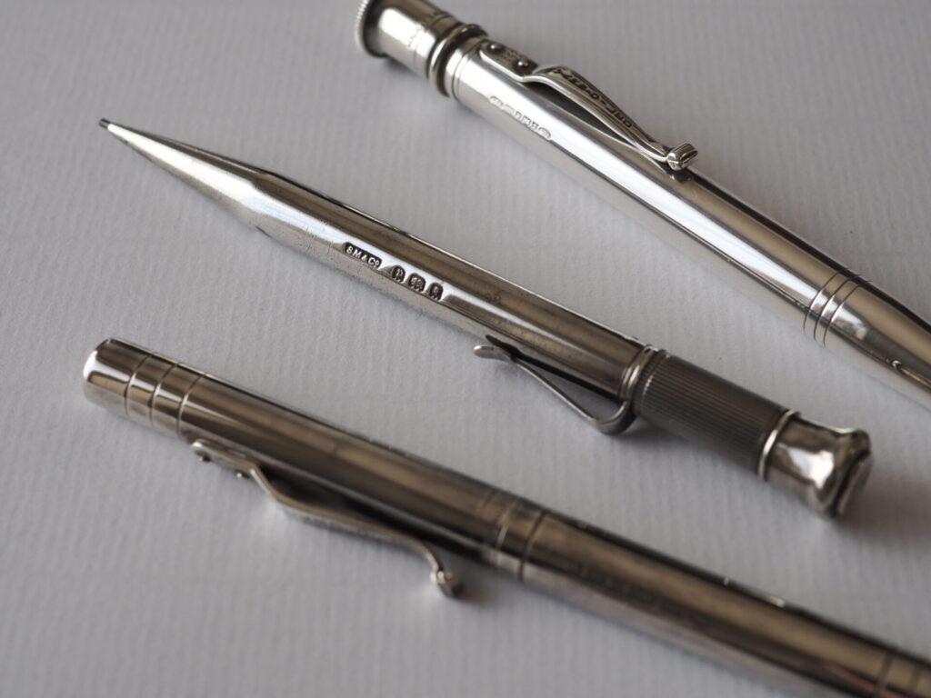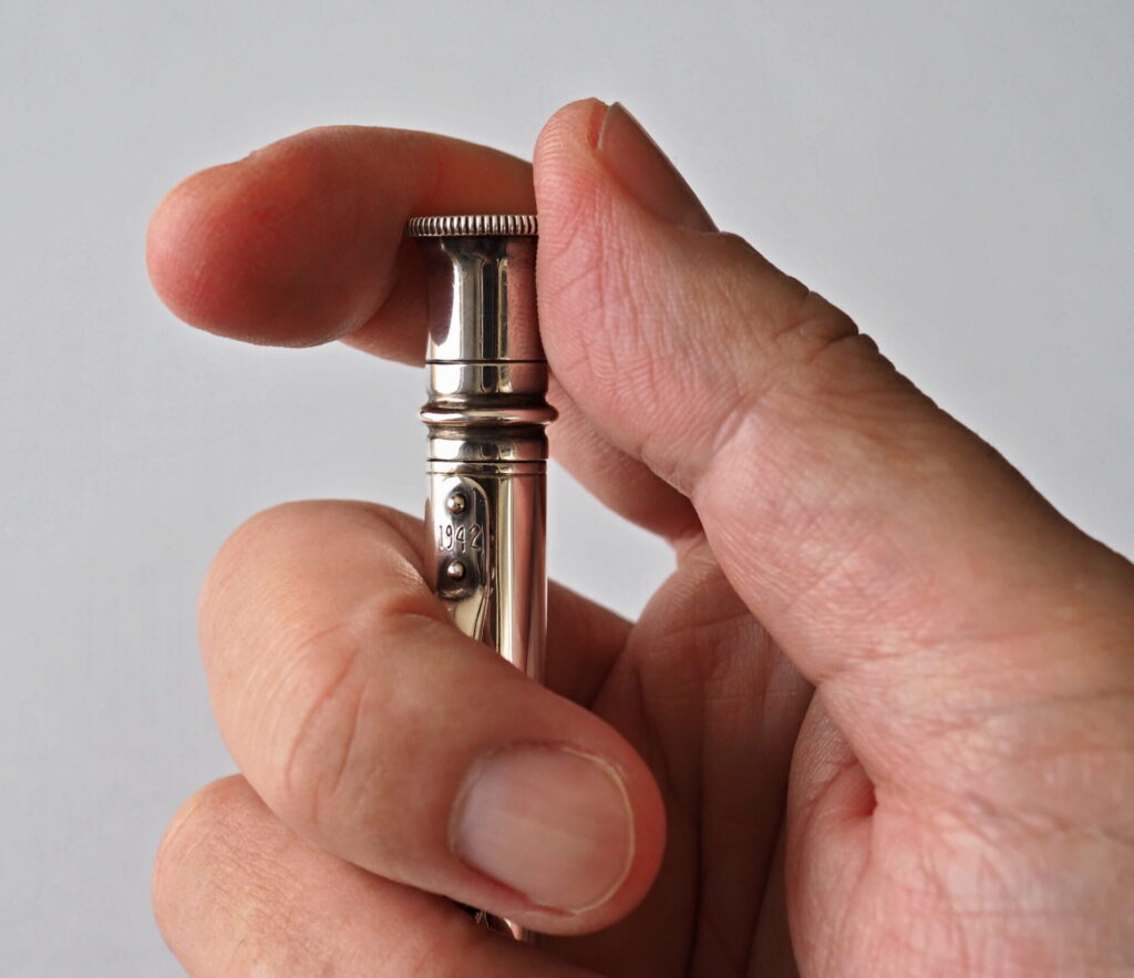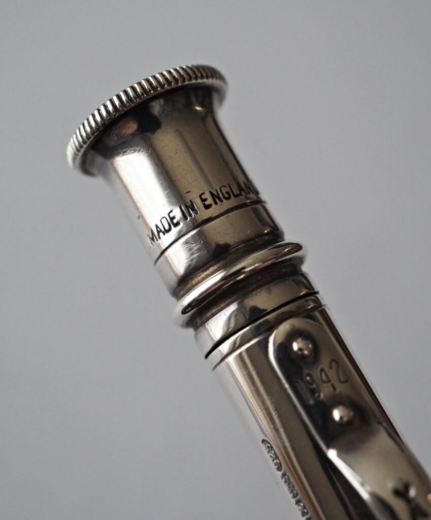 ▲バレルの刻印に「SM&Co」(S.Mordan & Co)のメーカーズマークが見られ、ホールマークから1930年の製造だということが分かる