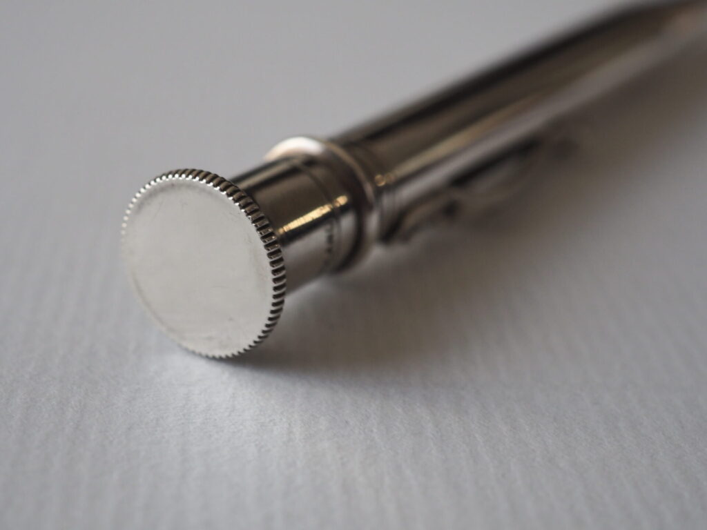エドワーディアンの操作部となる天冠にはローレットが刻まれ、胴軸に比べて幅も広いことからかなり快適にペン先の繰り出し操作が行えます。