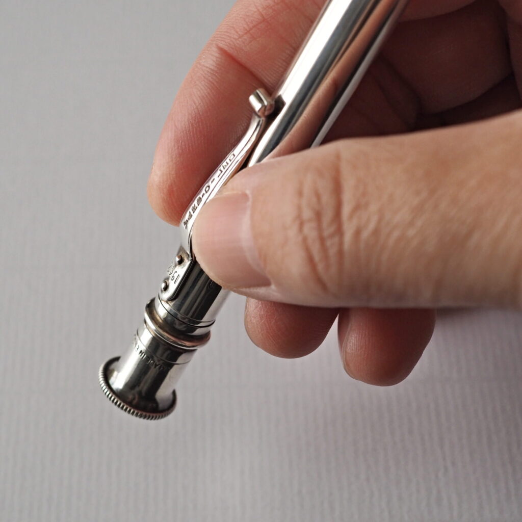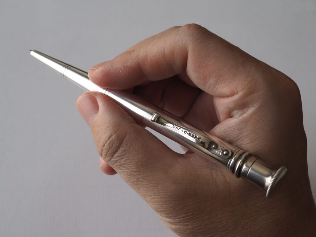それはというと、スターリングシルバー(SV925)製の筆記具。スターリングシルバーは古くから、反射率の高い輝きに魔除けの効果があるとされたり、銀イオンの強力な殺菌効果により、身につけるアイテムとの相性がいい素材と言われています。