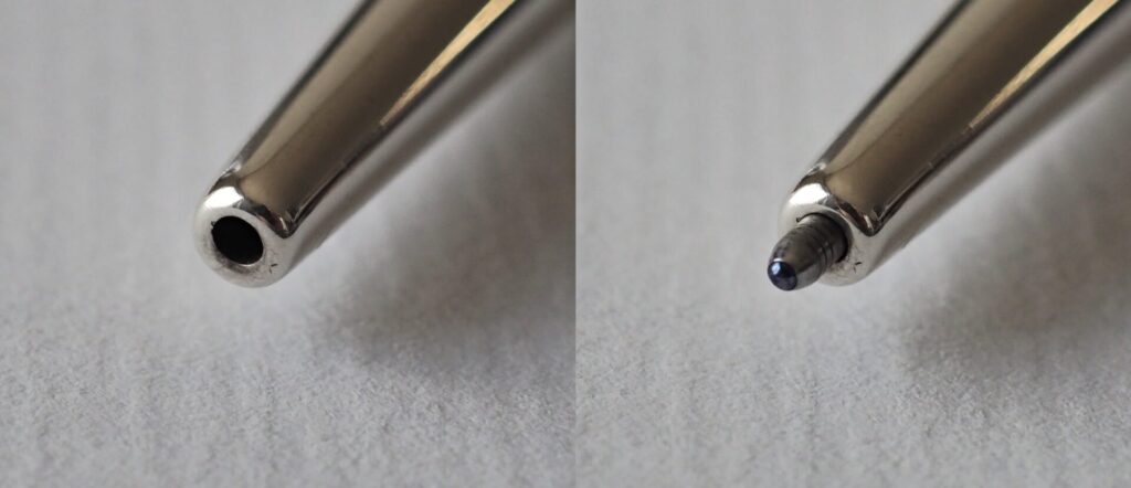 G2規格のリフィル対応となるため、私が信頼するパーカーのリフィルを入れています。この規格のリフィルが使えるということは、皆さんが大好きな(私もですが)ジェットストリームのリフィルも使えるということ。