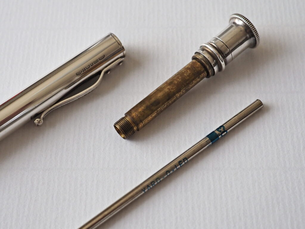 軸内(繰り出し機構)に他のヤード・オ・レッドのボールペンと同様に真鍮が使われているのもありますが、それでも明らかにスターリングシルバーの割合が多く、その重みは掌に心地良いだけでなく、ペンの自重による筆圧の軽減にも繋がっているのです。