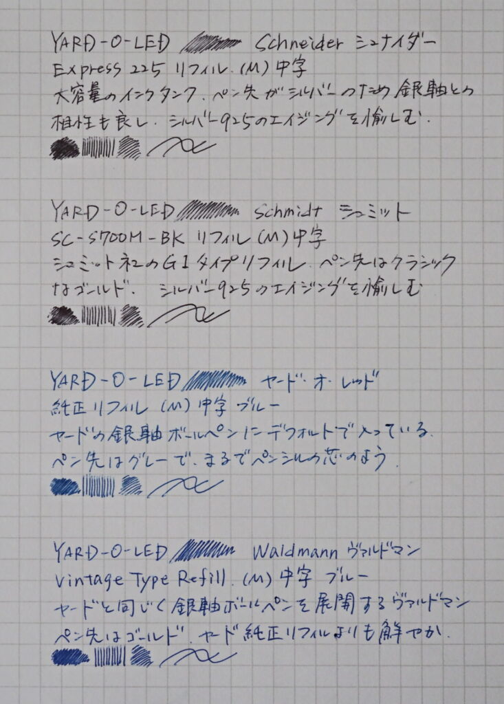さて、ここからはヤード・オ・レッドの銀軸ボールペンで使えるリフィルについて書いていこうと思います。