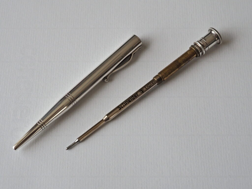 一般的にスターリングシルバー製のボールペンには粘度高めのインクの方が合いますので、銀軸ボールペンを使う際はメーカー純正のリフィルを使うのがお勧めです。