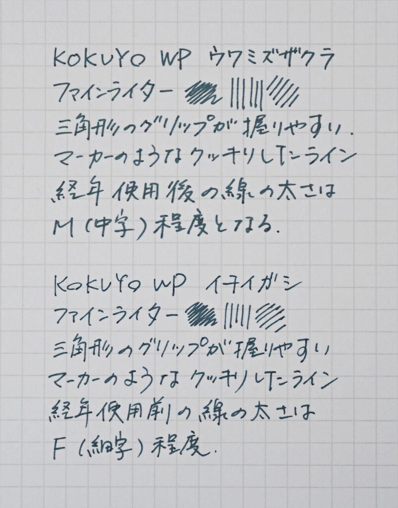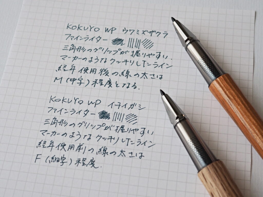 それでは、KOKUYO WP「イチイガシ」を見ていくにあたり、今回の記事では、デザイン(主にウワミズザクラとの比較)や筆記感(ローラーボール&ファインライターの筆記比較)を中心にレポートしていきたいと思います。