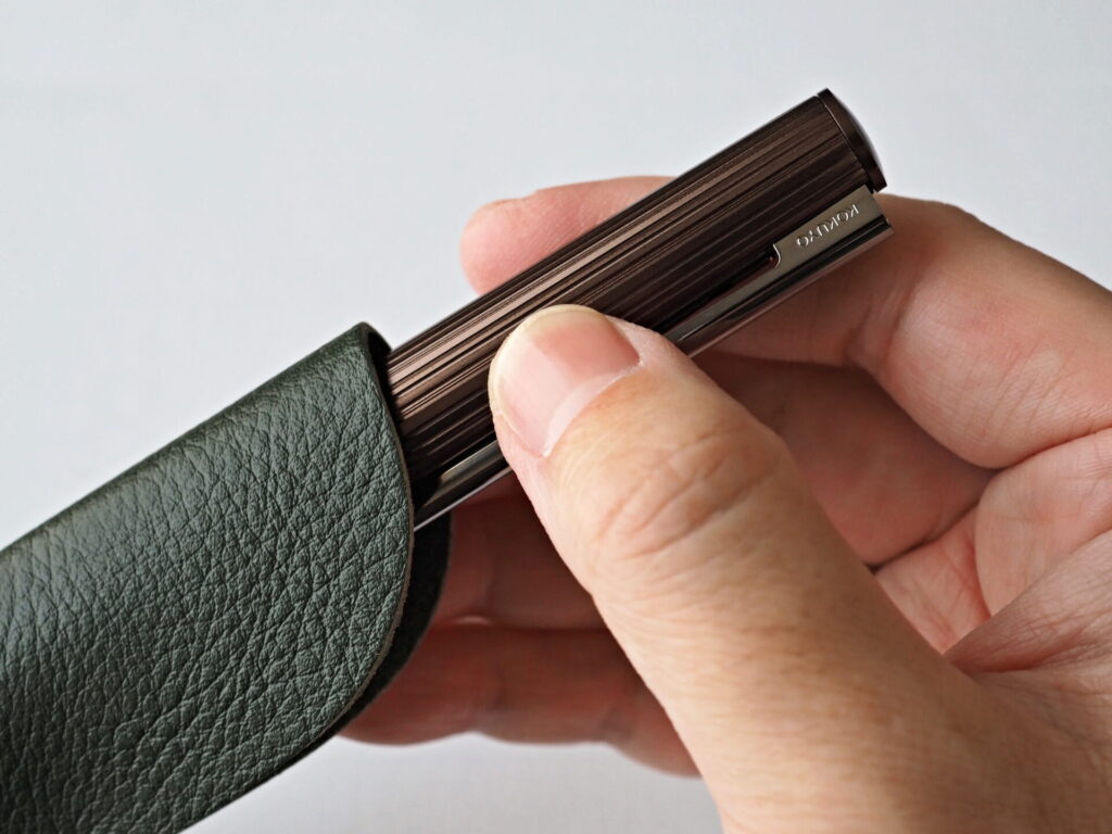 ▲今回はグリーンの本革ペンシースが付属。キャップとのアースカラーのコンビが愉しめる