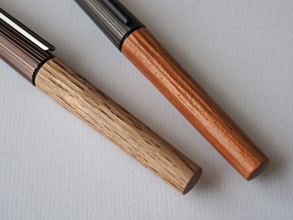 これぞ木軸筆記具の醍醐味ともいえる、一本として同じ模様がない、手元の個体だけの個性というものですね。
