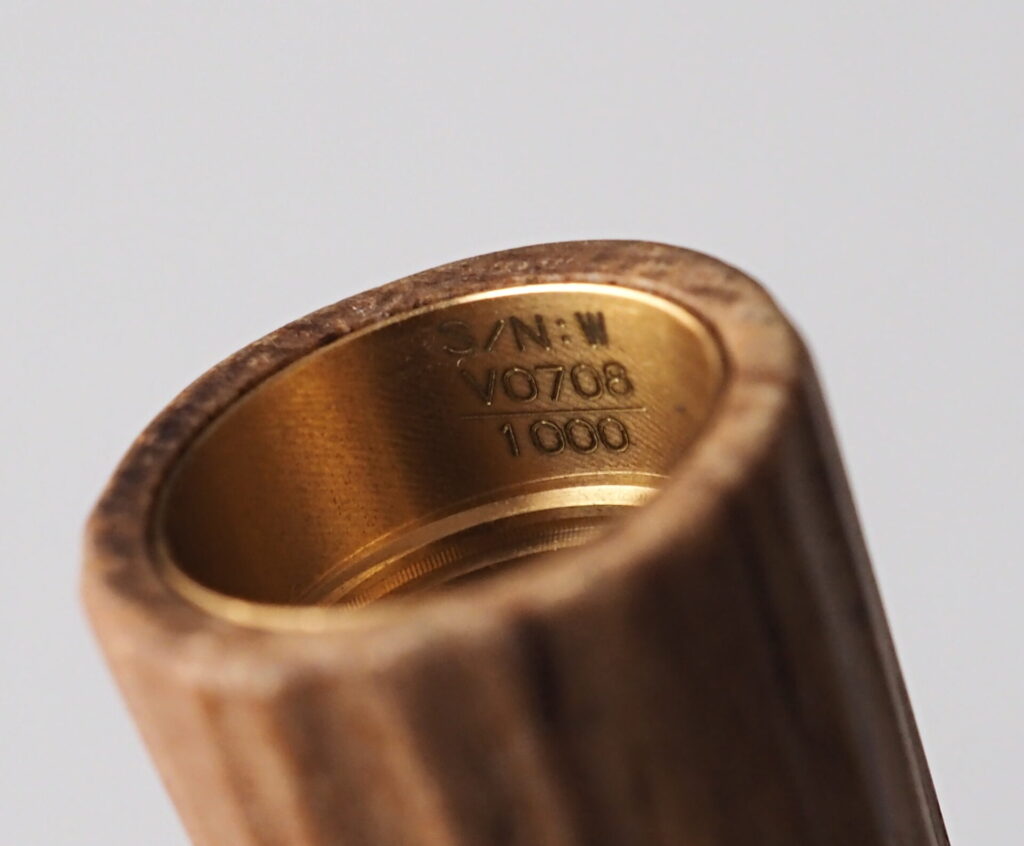 ネジ切りの金属部分にはリミテッドエディションの証、シリアルナンバーが刻印されています。