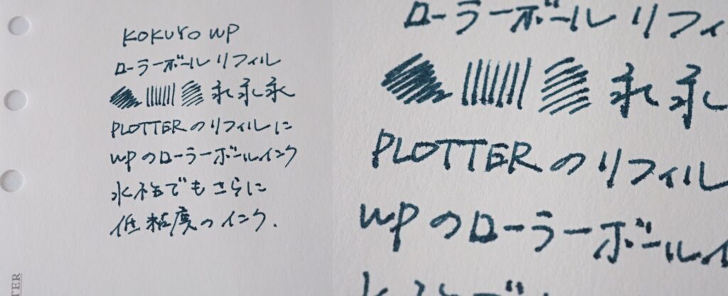 水性インクは油性インクよりもはっきりしたコントラストを生み、文字が見やすいインクですが、WPローラーボールは万年筆インクに近い性質を持っているように思います。